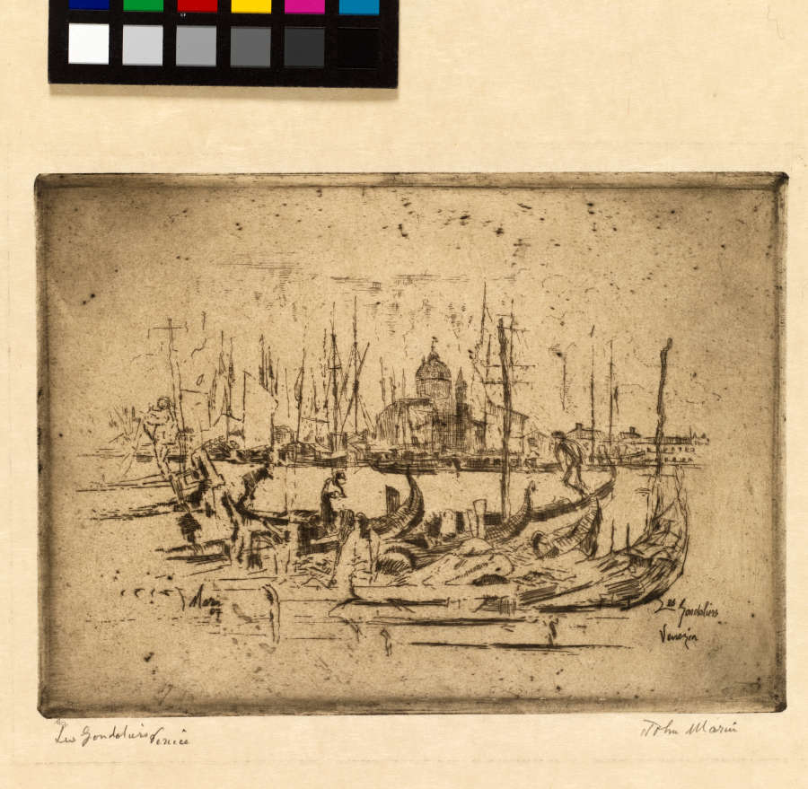 Original--Recto:In pencil under platemark on left:Les Gondoliers/ Venice ; signed on right:John MarinVerso:In pencil in LL:24.419In Plate--In LL:Marin/ 07 ; in LR:Les Gondoliers/ Venezia
