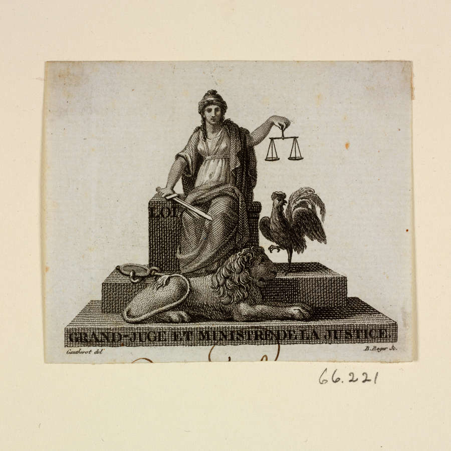 Original--Verso:in pencil in UC:2y6hIn Plate--On left:LOI; in LC:GRAND-JUGE ET MINISTRE DE LA JUSTICE; in LL;Gautherot del; in LR:B Roger sc.