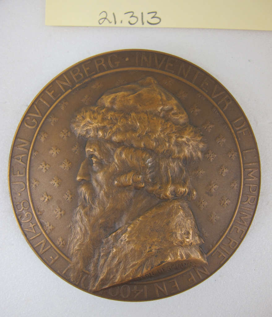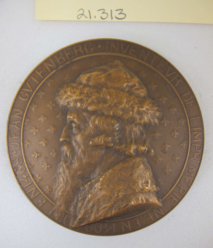 Obv: Jean Gutenberg inventeur de l'imprimerie ne en 1700 mort en 1468.Rev:La lumiere fut.