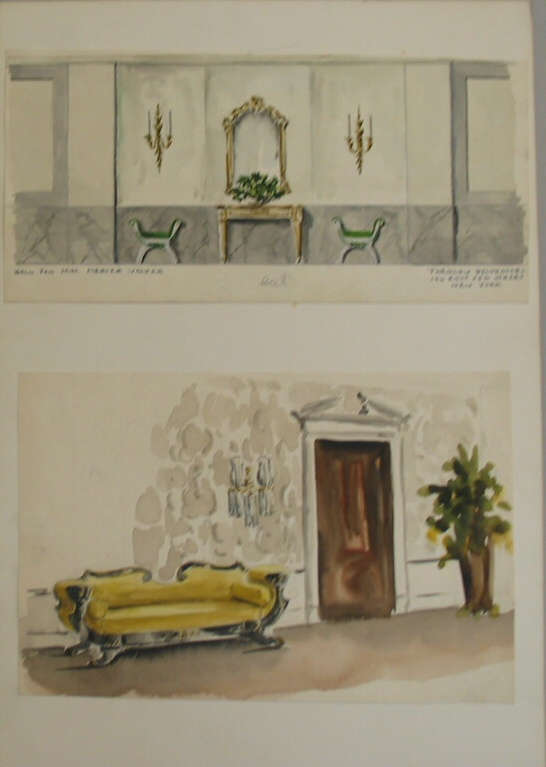 in fountain pen on top image; HALL FOR MRS. MERCER WALKER / THELDOW DECORATORS / 146 EAST 55TH STREET / NEW YORK