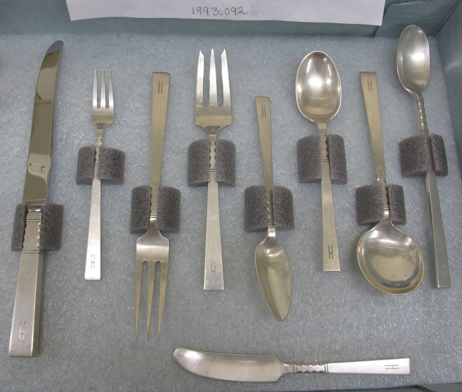 Each stamped: "Black, Starr & Gorham / HAND MADE / STERLING" on back of handles. Monogram: "H" engraved on front of handle.
