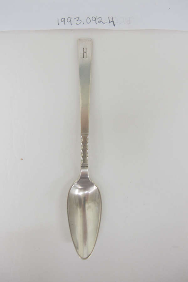 Each stamped: "Black, Starr & Gorham / HAND MADE / STERLING" on back of handles. Monogram: "H" engraved on front of handle.