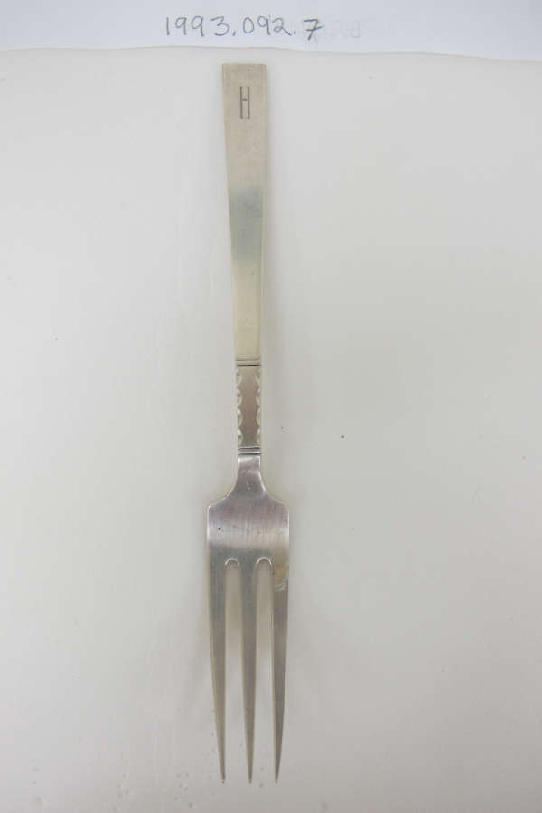 Each stamped: "Black, Starr & Gorham / HAND MADE / STERLING" on back of handles. Monogram: "H" engraved on front of handle.