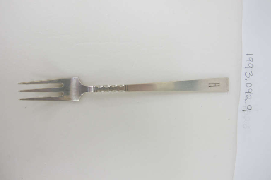 Each stamped: "Black, Starr & Gorham / HAND MADE / STERLING" on back of handles. Monogram: "H" engraved on front of handle.
