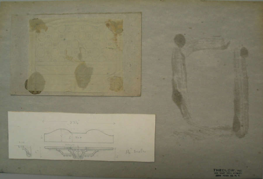 On matboard recto in pencil: "SIDE / 6" / 4" / 7" / 5" / FRONT / 37 1/2" / 10" / 1 1/2" scale".