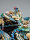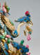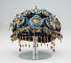 Silver and copper-alloy with gilding, kingfisher feathers, jadeite, imitation pearls, coral, glass, tourmaline, rose quartz; frame: metal wires with black and green silk floss and black satin
