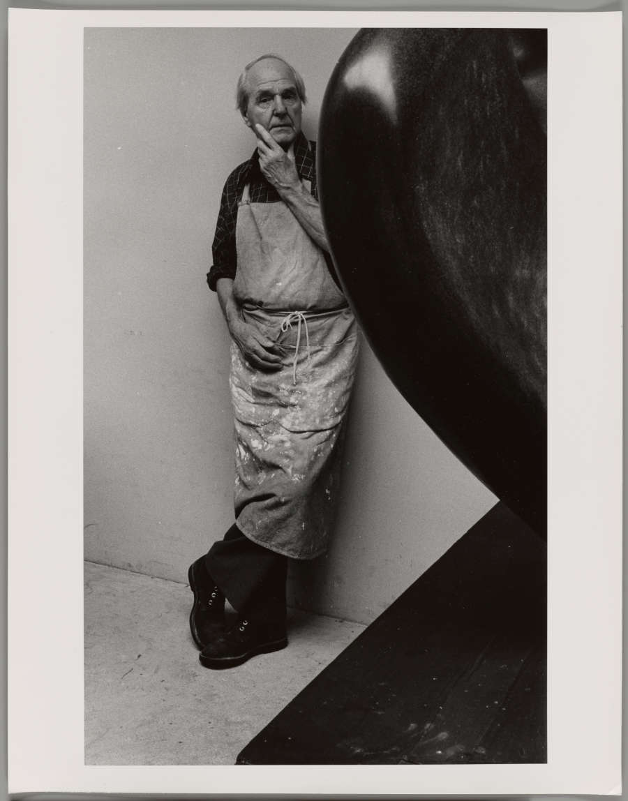 On verso in graphite at top left: Henry Moore. On verso in graphite near center: 6399. On verso stamped: (c) Arnold Newman/This photograph cannot be copied televised or reproduced in any form without the expressed and written permission of the photographer. It can be used for exhibit purposes only./39 West 67th St., N.Y.C. 10023. On verso in graphite along bottom edge: PF125677.