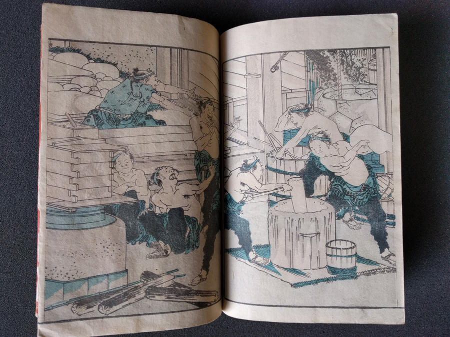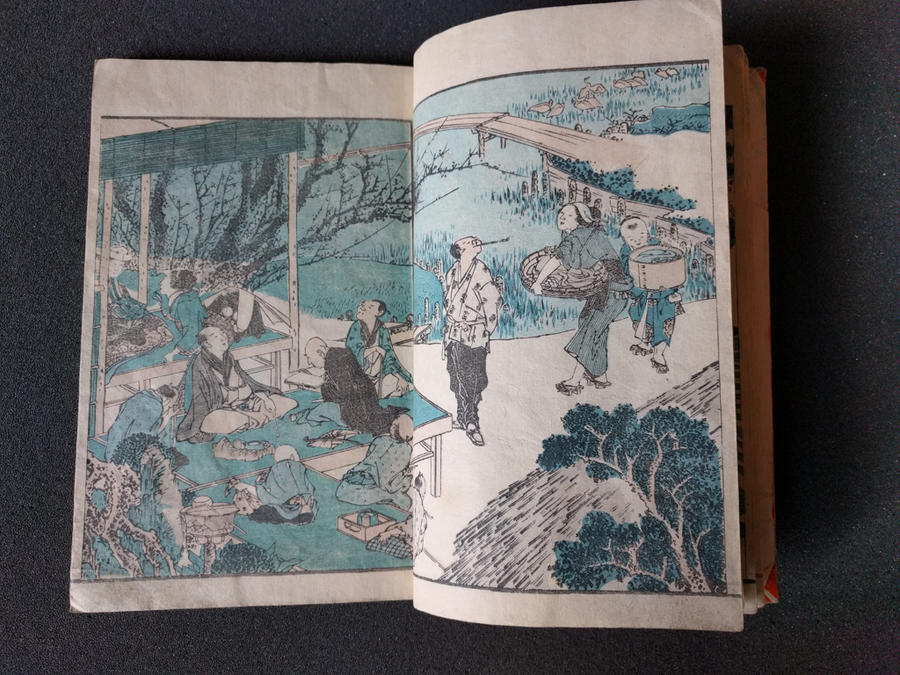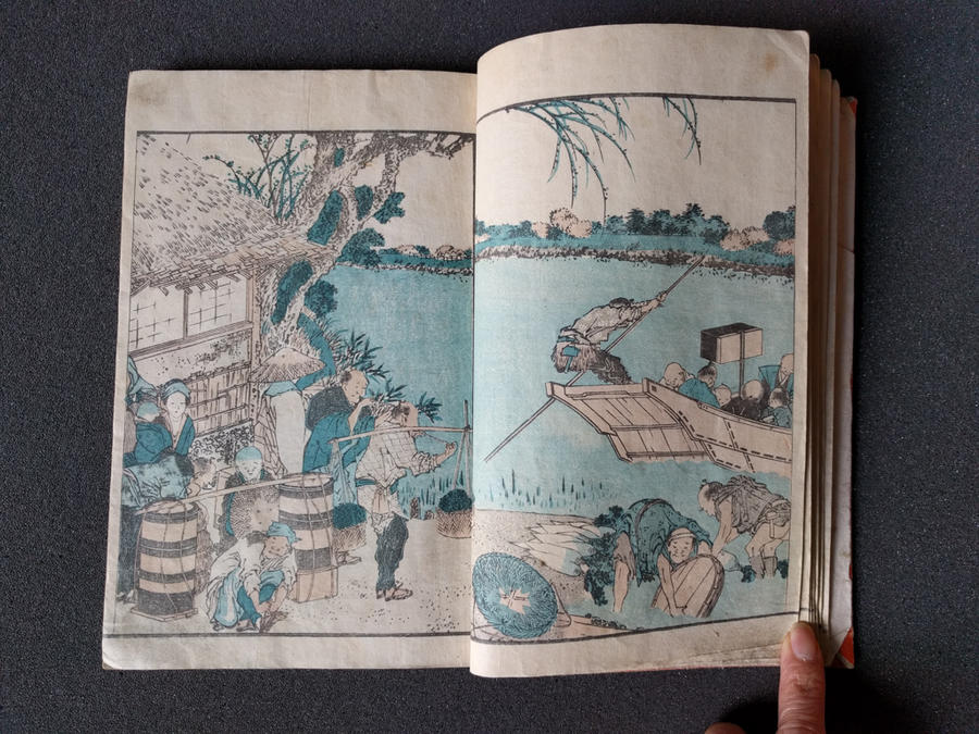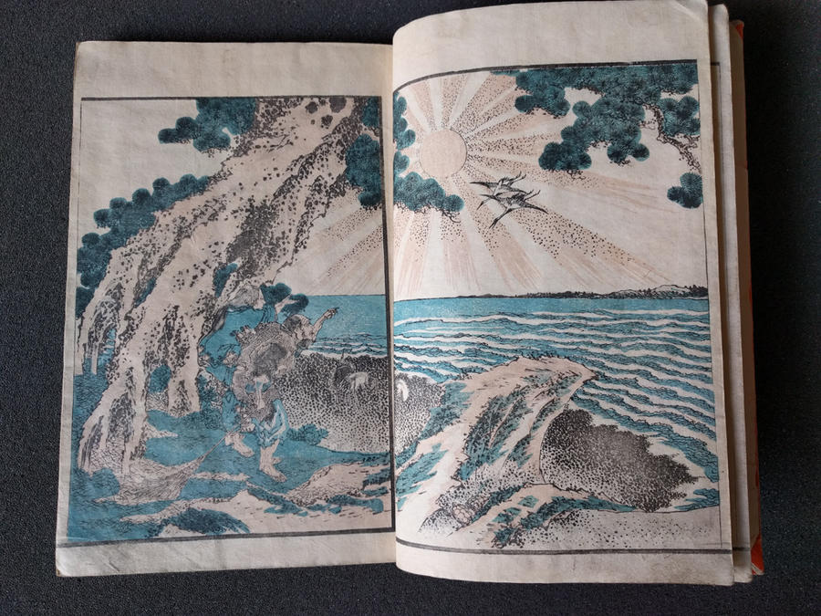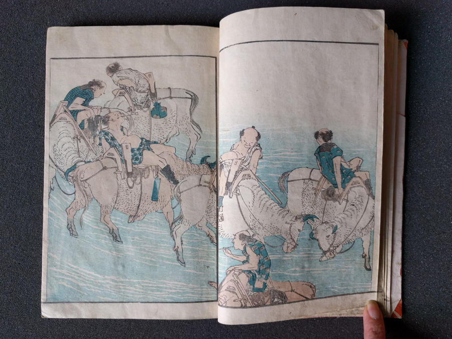 Inscription on first page (with Japanese script), top left, in pencil: Gafu. Hokusai