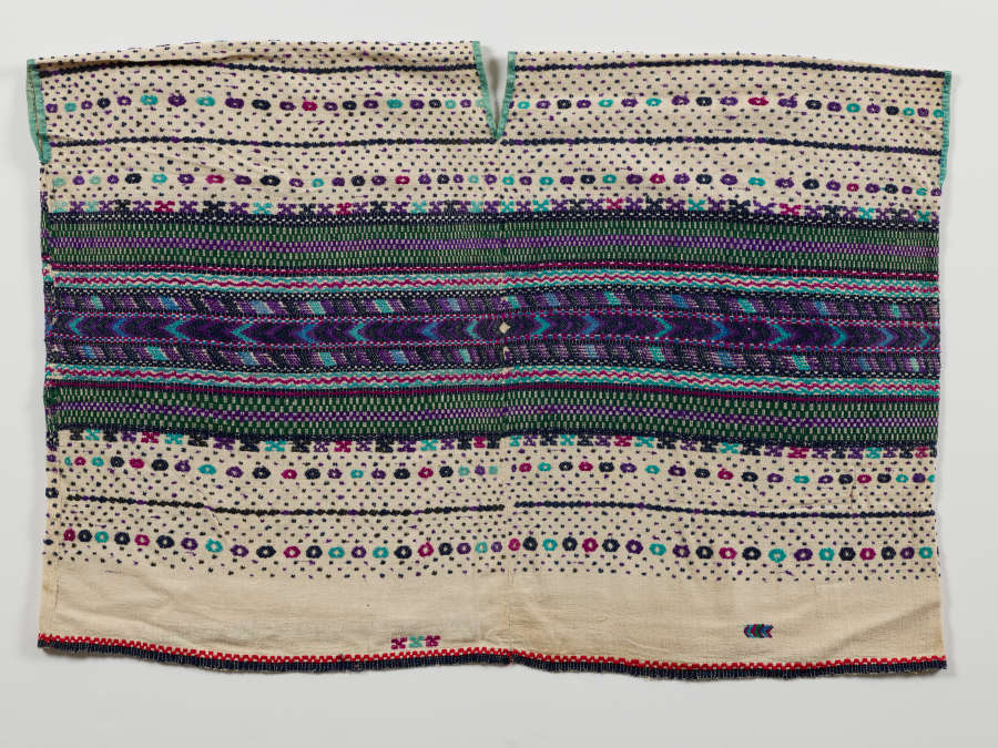 Backstrap-loom-woven cotton plain weave with cotton and silk supplementary weft patterning