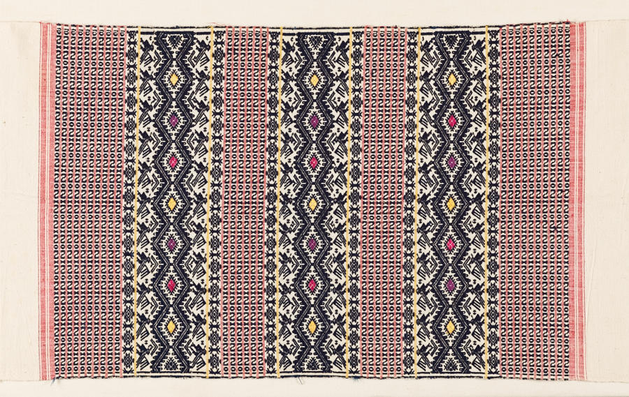 Treadle-loom-woven cotton plain weave with cotton and silk supplementary weft patterning