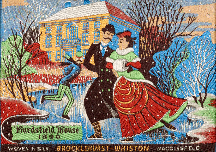 Inscription: Woven text: “Hurdsfield House / 1890 / Woven in silk / Brocklehurst-Whiston Macclesfield.”