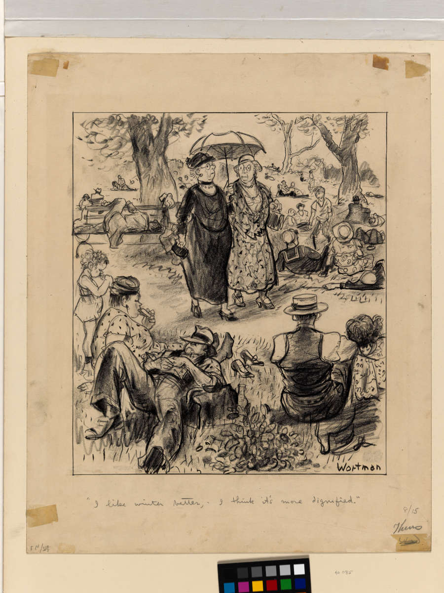 The images on this website can enable discovery and collaboration and support new scholarship, and we encourage their use. This object is in Copyright. This object is I Like Winter Better - I think It's More Dignified with the accession number of 40.085. To request new photography, please send an email to imagerequest@risd.edu and include your name and the object's accession number.