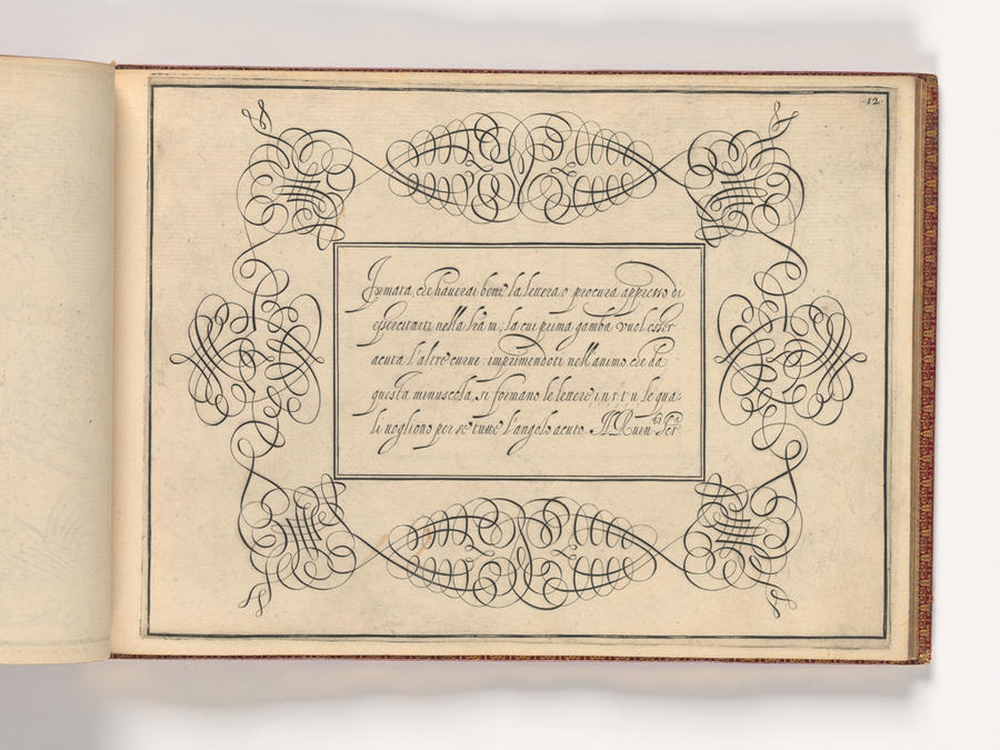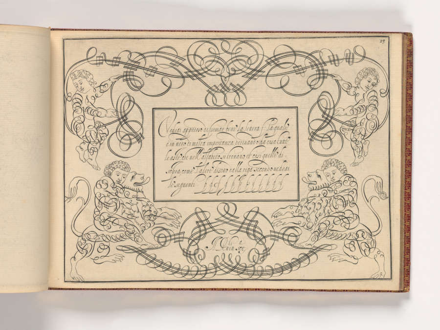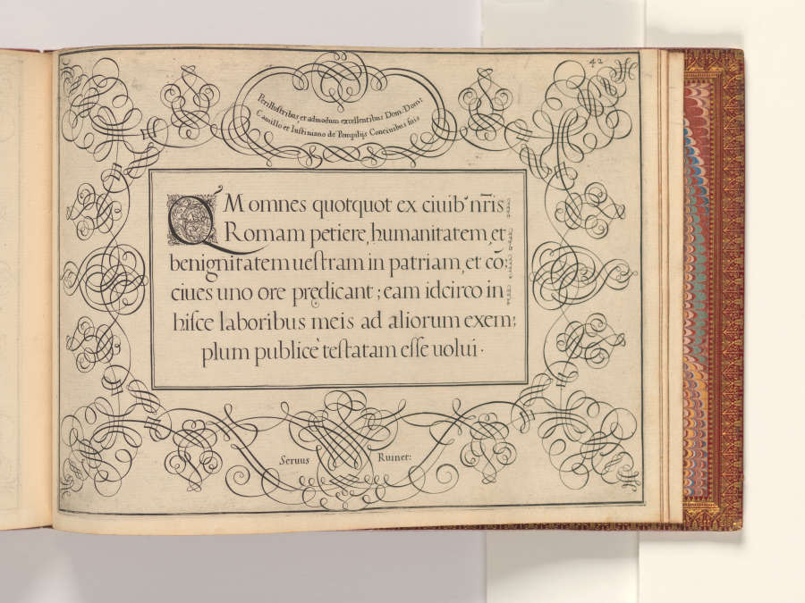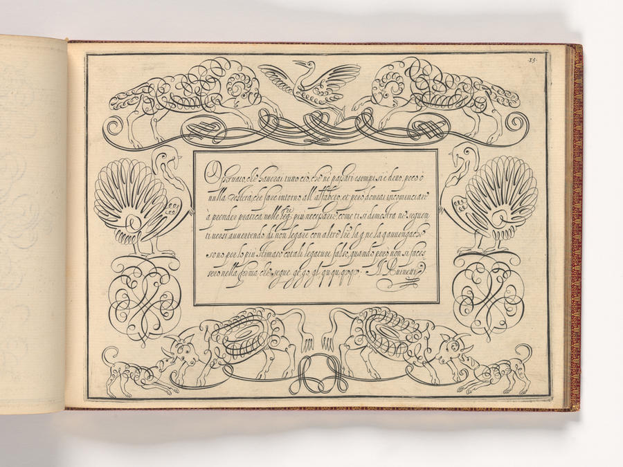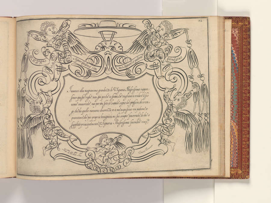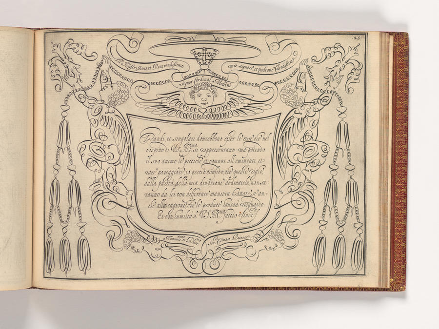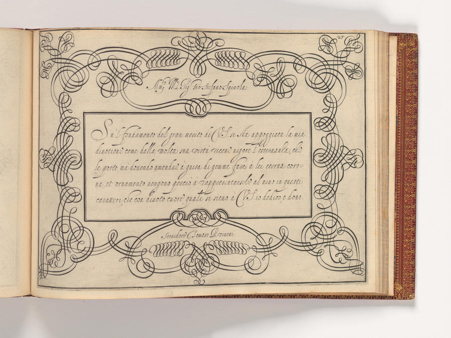 in graphite, flyleaf: "ex libris Destailleur, Stirling-Maxwell and Mark Lansburgh"; in different hand, graphite "830 326 / Calligraphy Ruinetti"; in different hand, graphite "580520"; in different hand ballpoint pen, "71-40-2". In graphite, endpaper (back): "MC"; in different hand, graphite "Marzoli 21 / Bonacini 1585"; in different hand, graphite "2800/678"; in different hand, graphite, "rnoyt".