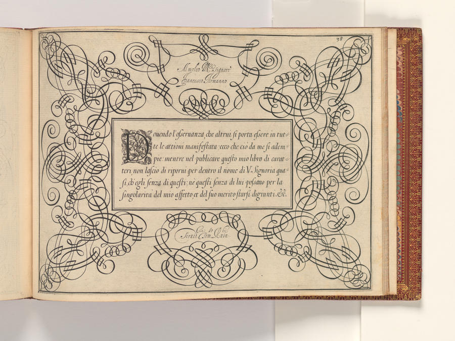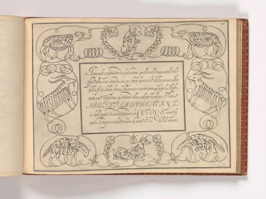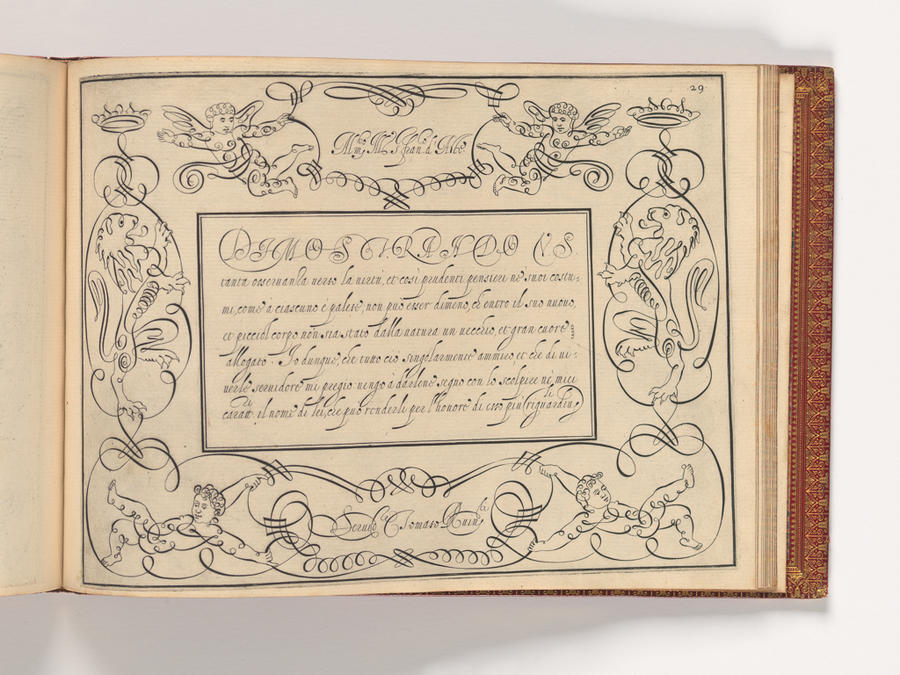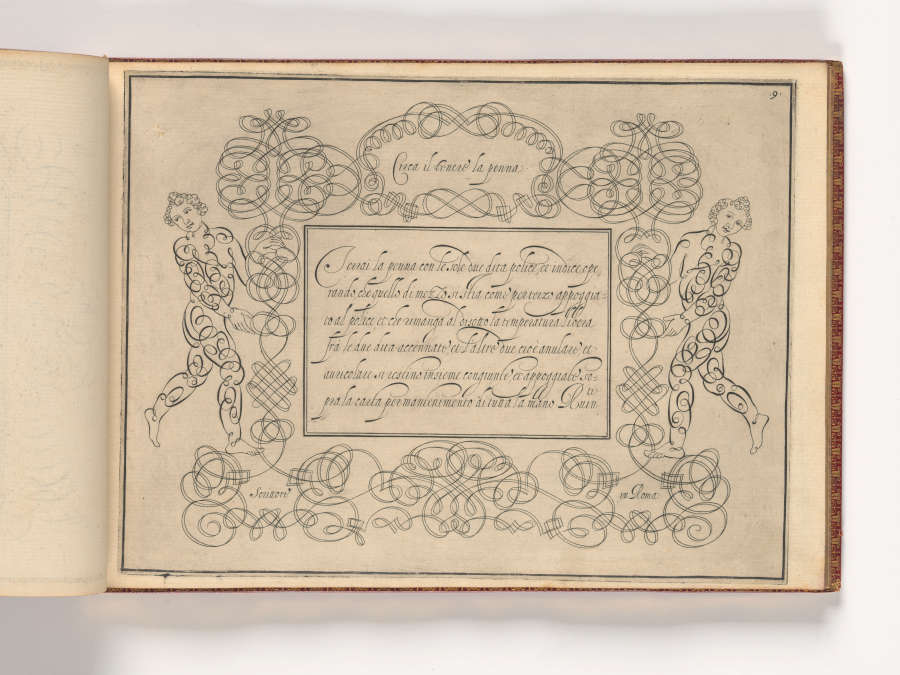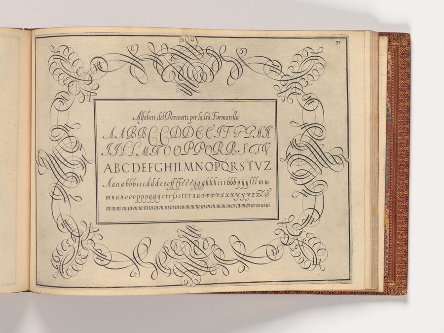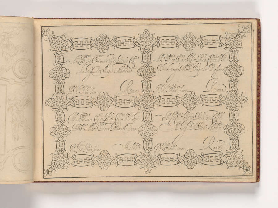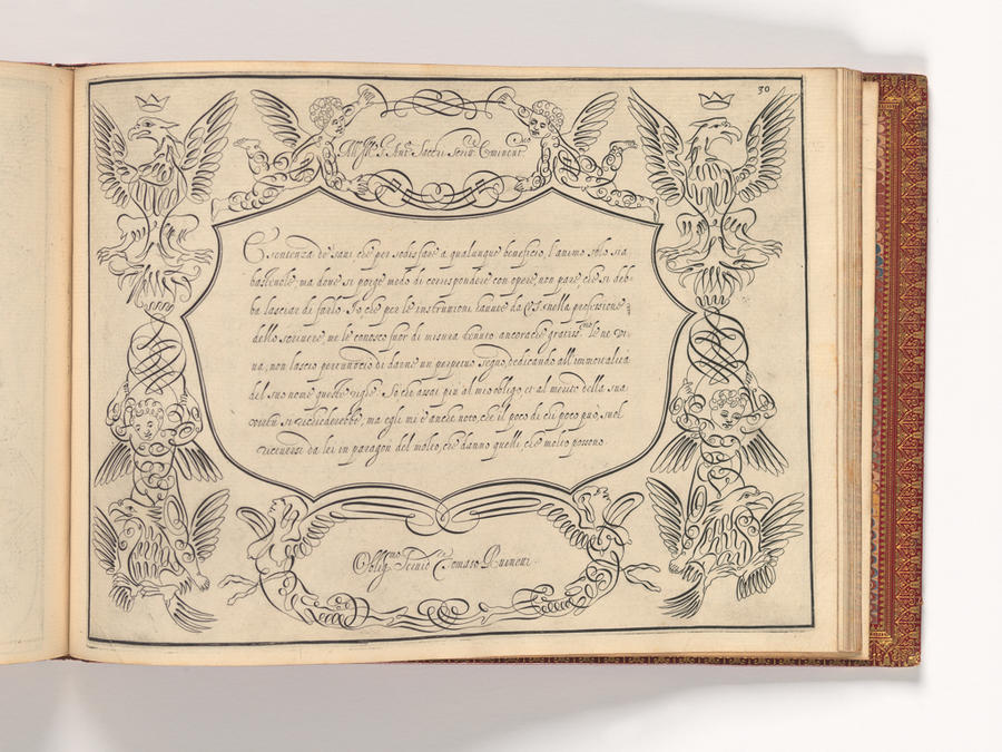 in graphite, flyleaf: "ex libris Destailleur, Stirling-Maxwell and Mark Lansburgh"; in different hand, graphite "830 326 / Calligraphy Ruinetti"; in different hand, graphite "580520"; in different hand ballpoint pen, "71-40-2". In graphite, endpaper (back): "MC"; in different hand, graphite "Marzoli 21 / Bonacini 1585"; in different hand, graphite "2800/678"; in different hand, graphite, "rnoyt".