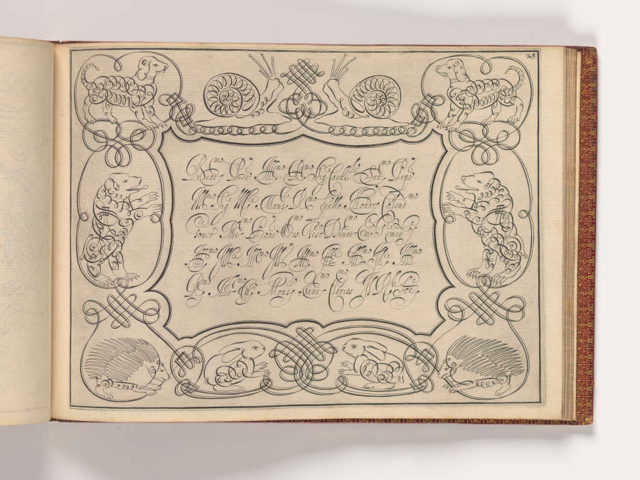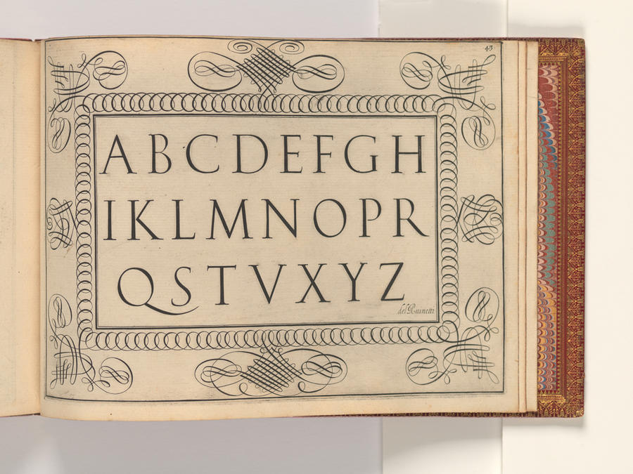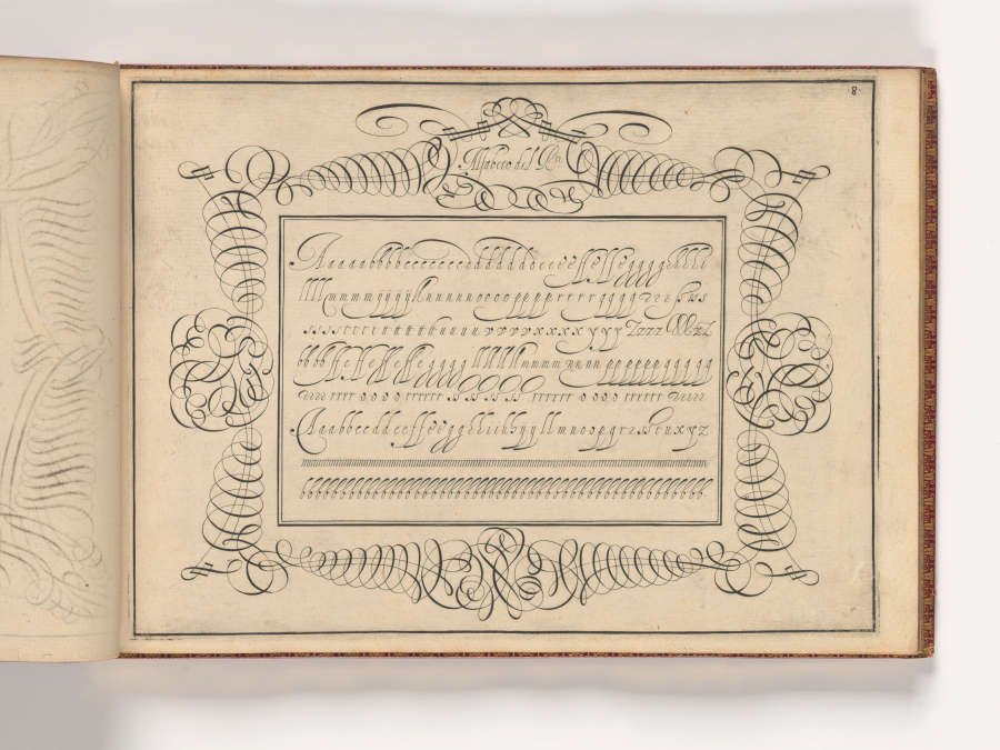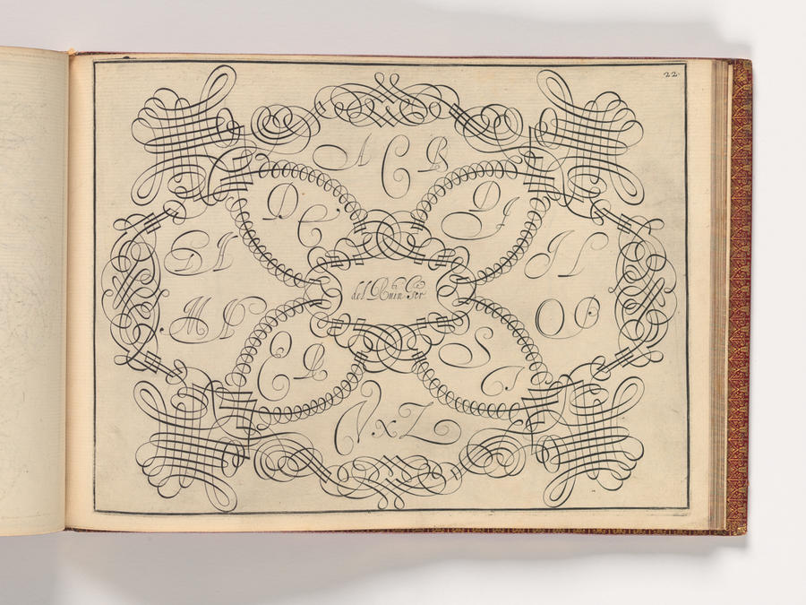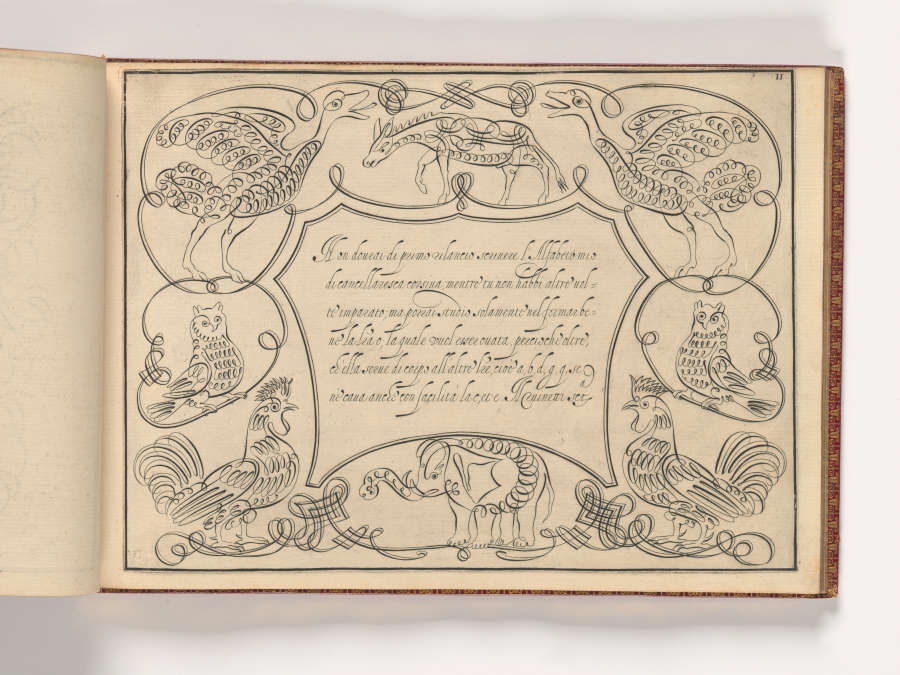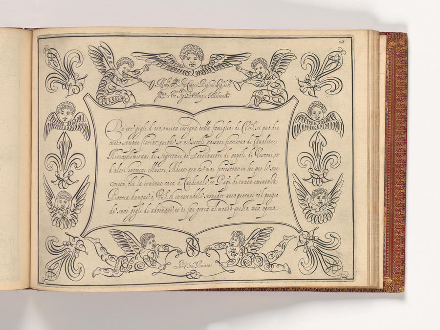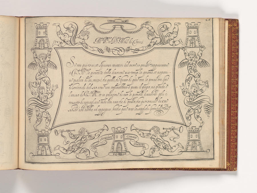 in graphite, flyleaf: "ex libris Destailleur, Stirling-Maxwell and Mark Lansburgh"; in different hand, graphite "830 326 / Calligraphy Ruinetti"; in different hand, graphite "580520"; in different hand ballpoint pen, "71-40-2". In graphite, endpaper (back): "MC"; in different hand, graphite "Marzoli 21 / Bonacini 1585"; in different hand, graphite "2800/678"; in different hand, graphite, "rnoyt".