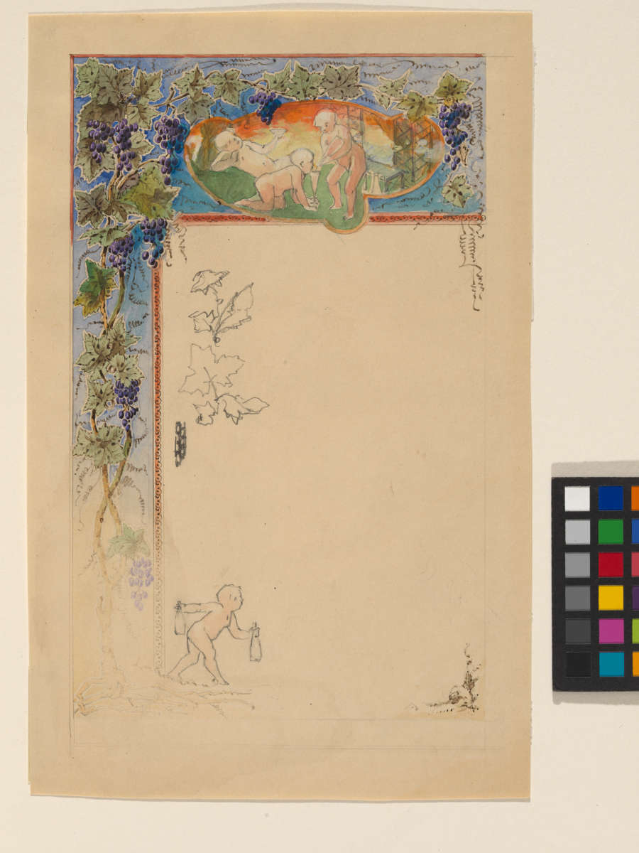 Illustrated Border with Scenes of Putti with Wine and Grapes, mid 1800s-early 1900s