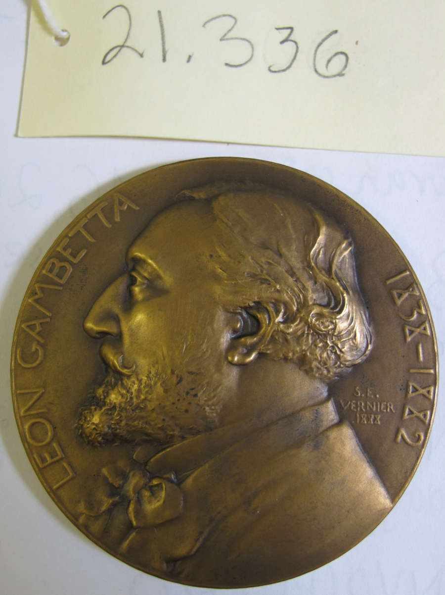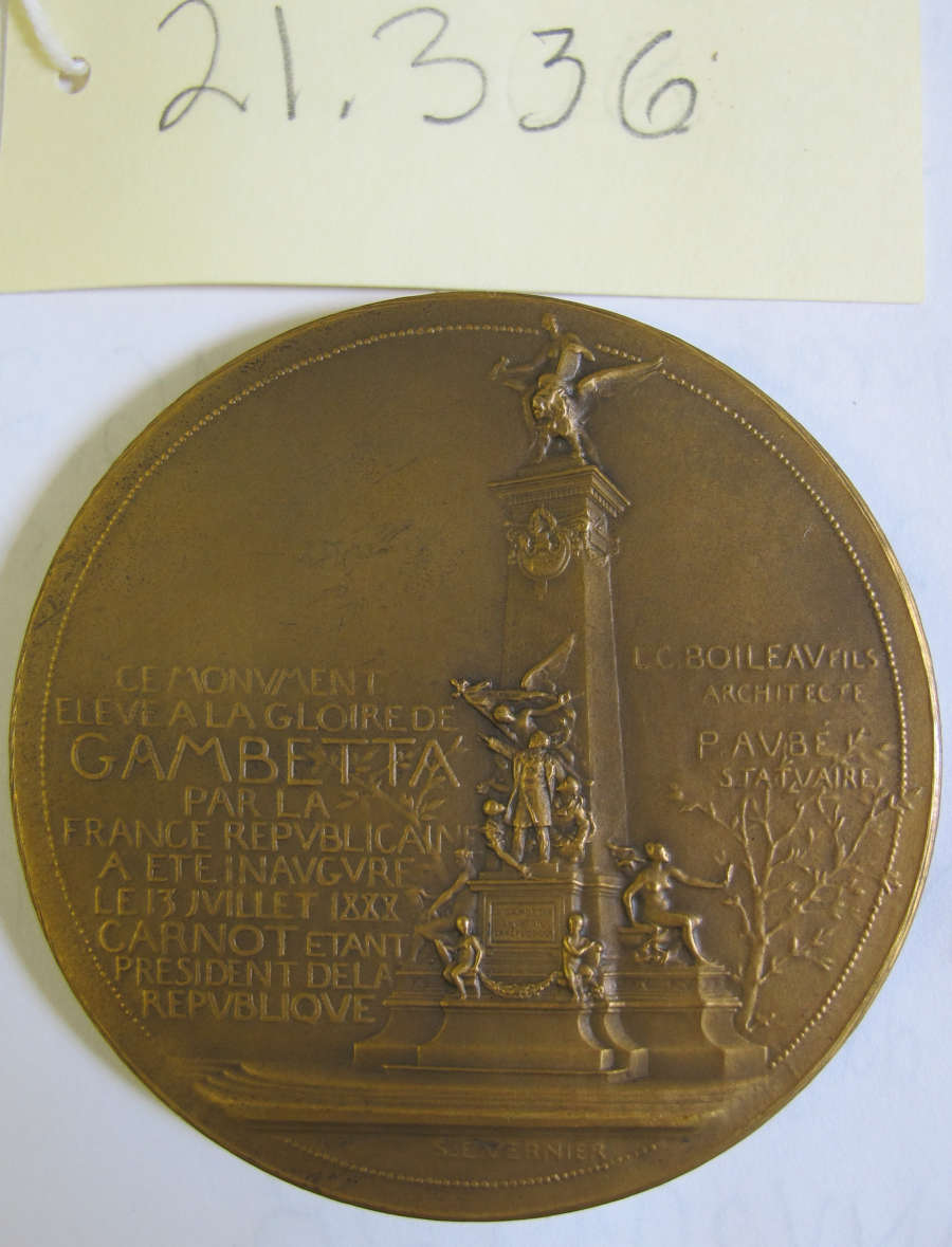 Obv: Leon Gambetta 1838-1882.Rev: Ce monument eleve a la gloire de Gambetts par la France Republicaine a ete inaugure.