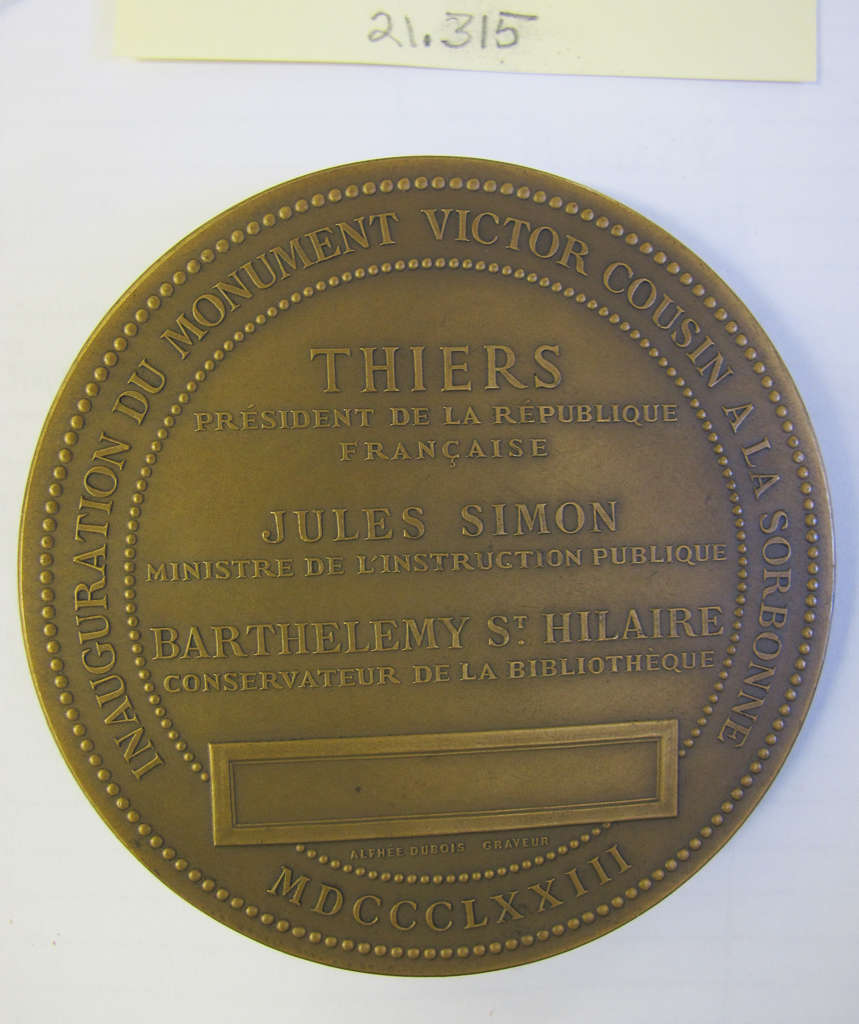Obv: A.Carrier-Belleuse, Sculpt.Rev: Inauguration du monument Victor Cousin a la Sorbonne.