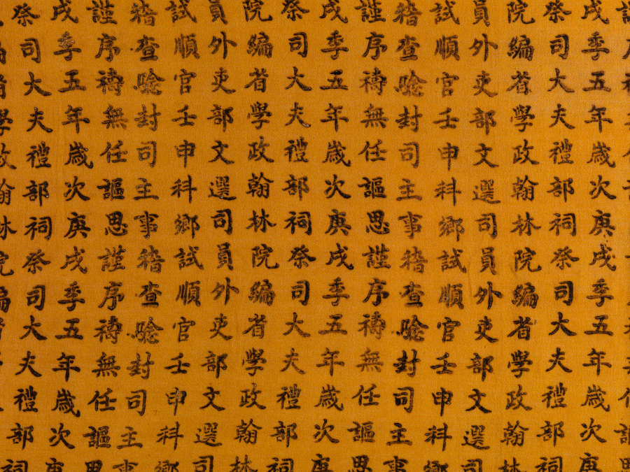Cotton, gilt; plain weave, chirimen (crepe yarn), stamped, surihaku (metallic leaf applied with rice paste)