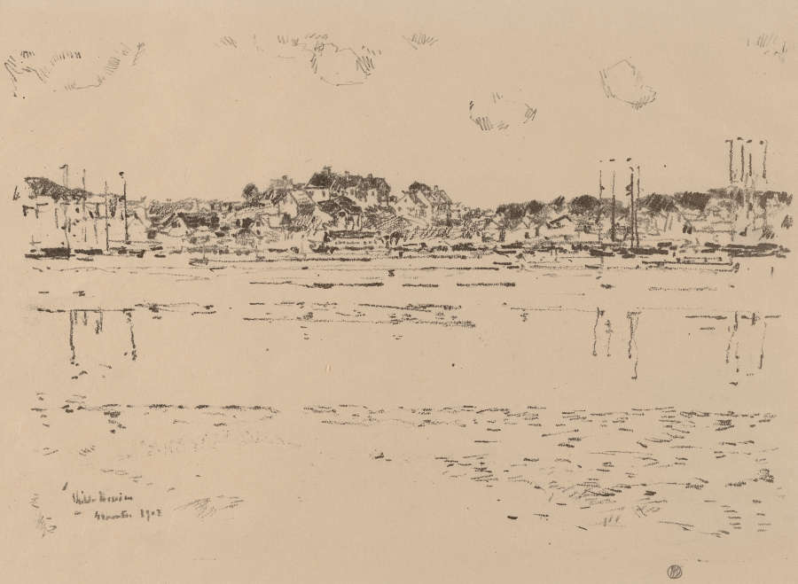 Original--Recto:monogrammed in pencil below image on right:CH (in circle); In pencil in LL:Inner Harbor; In green pencil in LL corner:168 (in circle)In Plate--In LL corner:Childe Hassam/Gloucester 1918