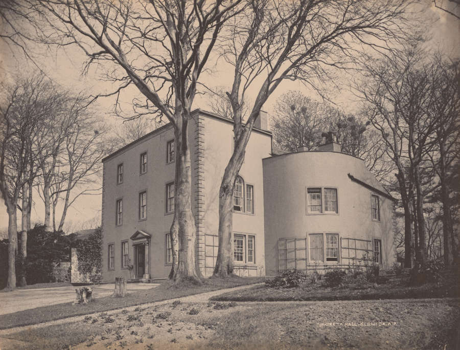 Dry stamp & ink stamps of photographer; inscribed on recto within image, LR:IP. CRETA HALL, KESWICK, A.P.; dry stamp, LR:PETTITT'S SERIES / KESWICK; ink stamp on verso, LR:PHOTOGRAPHED / BY / PETTITT / THE ART GALLERY / KESWICK