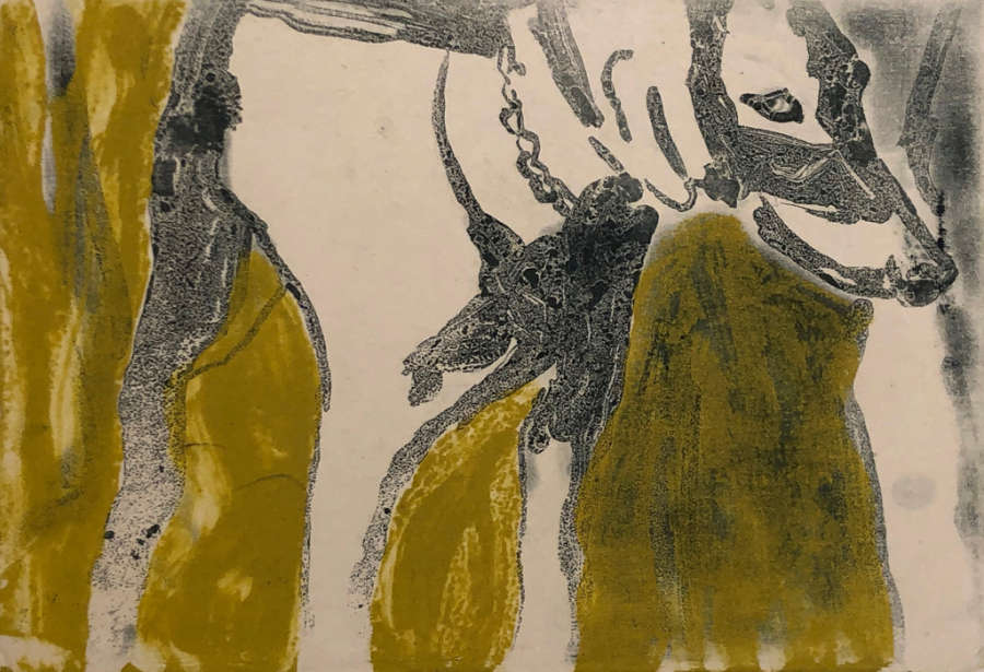 Sugar-lift, spit-bite aquatint etching on paper