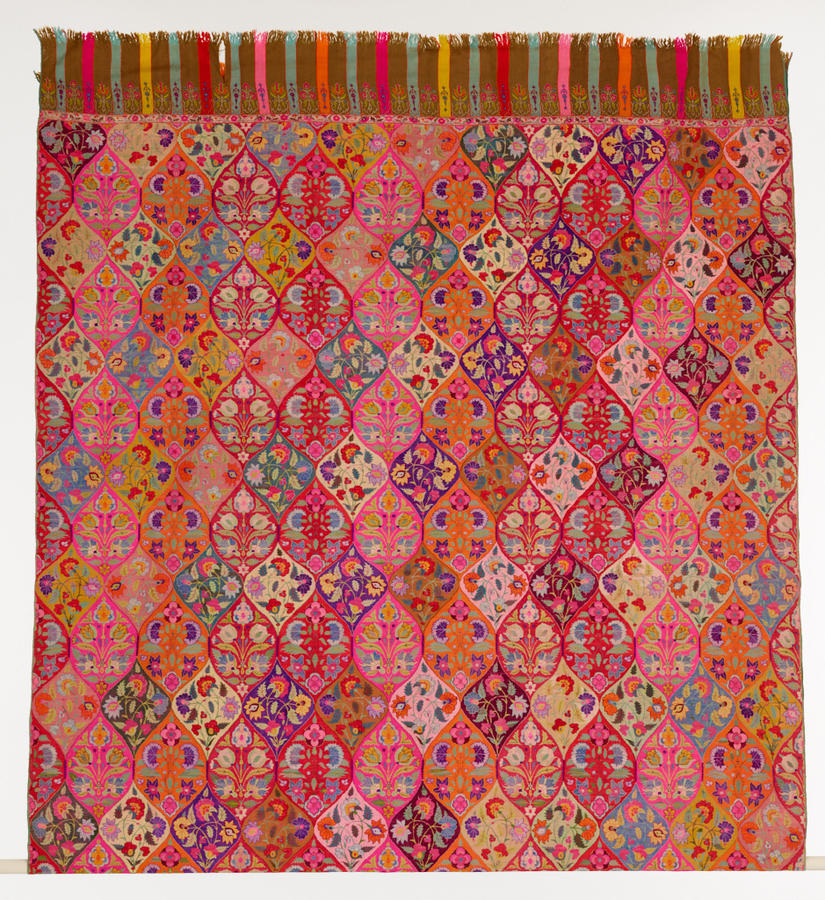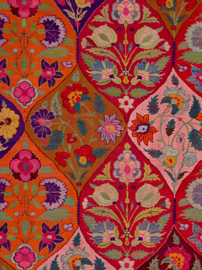 Pashm (goat hair) kani weave (double-interlocking twill tapestry weave)