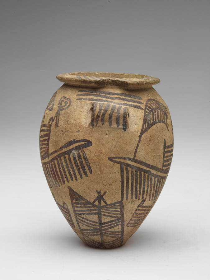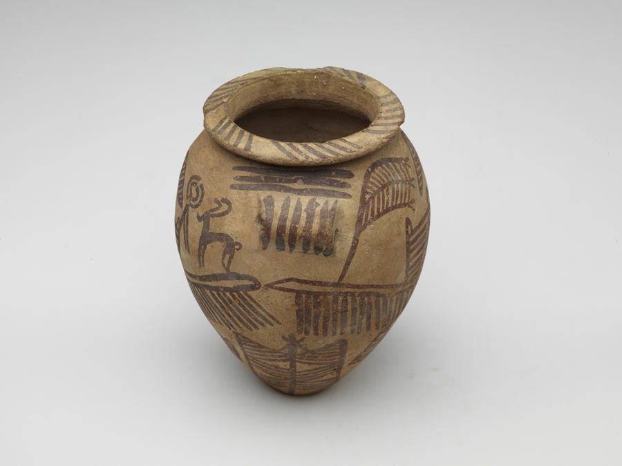 Jar with water, plant, and animal motifs, 3450-3300 BCE