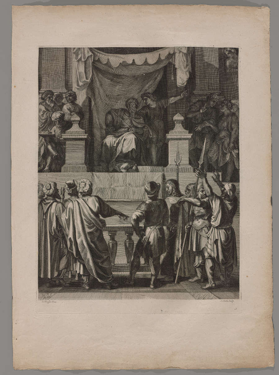 Inscription: On recto, in black ink; below image, within platemark: LL "N. Pouffin Pinx." ; LR "C. Stella Sculp."; LR corner "13"