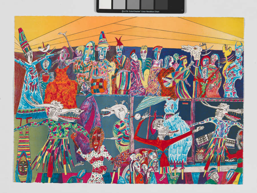 Inscribed in graphite, recto LL: 36/70; LC: JONKONNU FESTIVAL; LR: VINCENT. Brandywine blindstamp embossed recto LL.