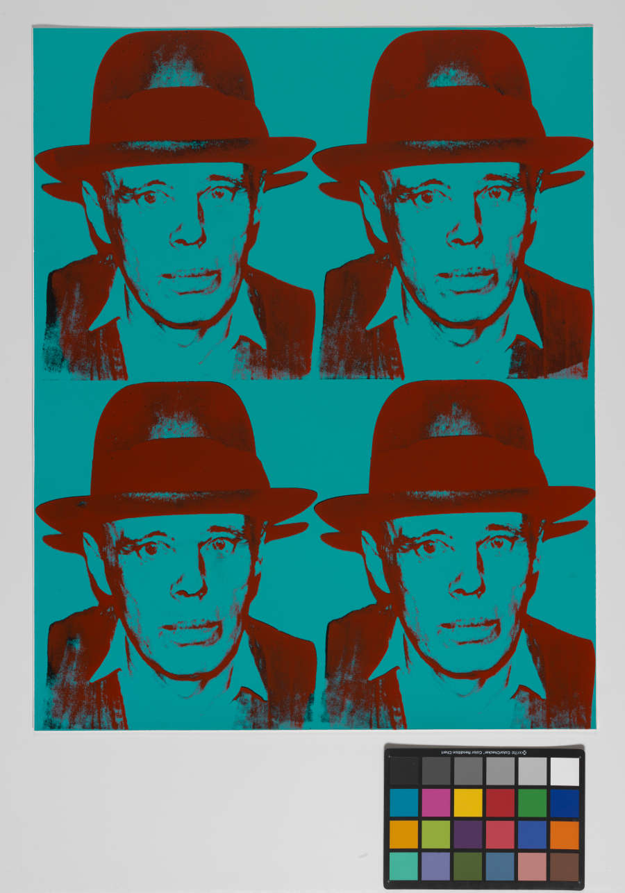 Stamped in black ink, verso LL: © ANDY WARHOL 1980. Stamped in blue ink, verso LL: BEUYS BY WARHOL/ Published by/ Verlag Schellmann & Kluser/ Munchen. Stamped in red ink, verso LR: Extra, out of the edition/ For research and educational purposes only/ Not for sale. Stamped in blue, verso LR: The Estate of Andy Warhol. Stamped in blue, verso LR: Authorized by the Andy Warhol Foundation for the Visual Arts.