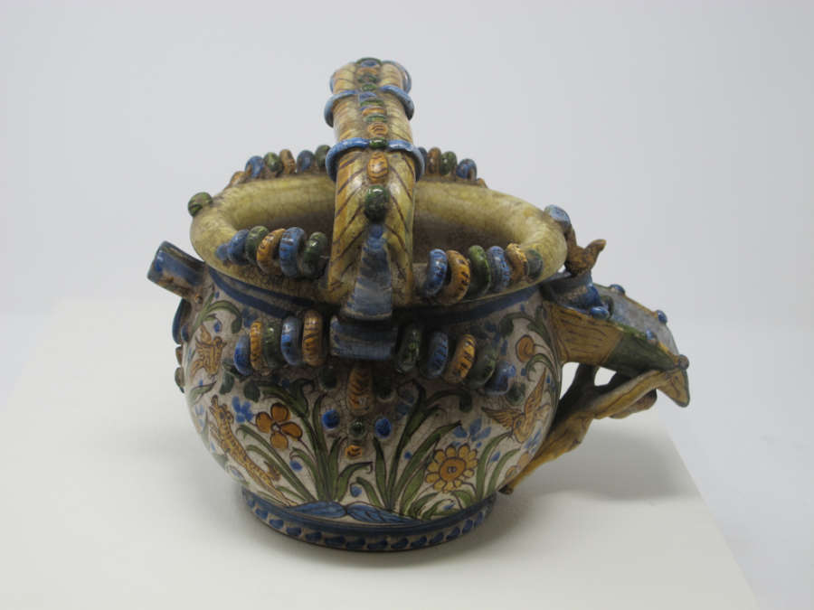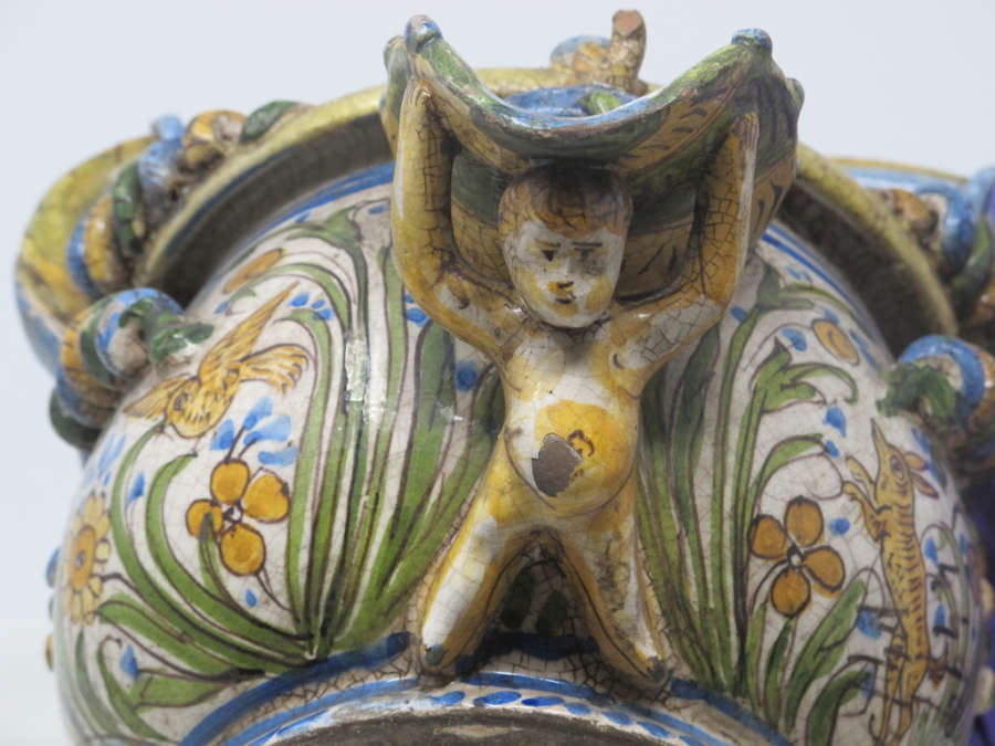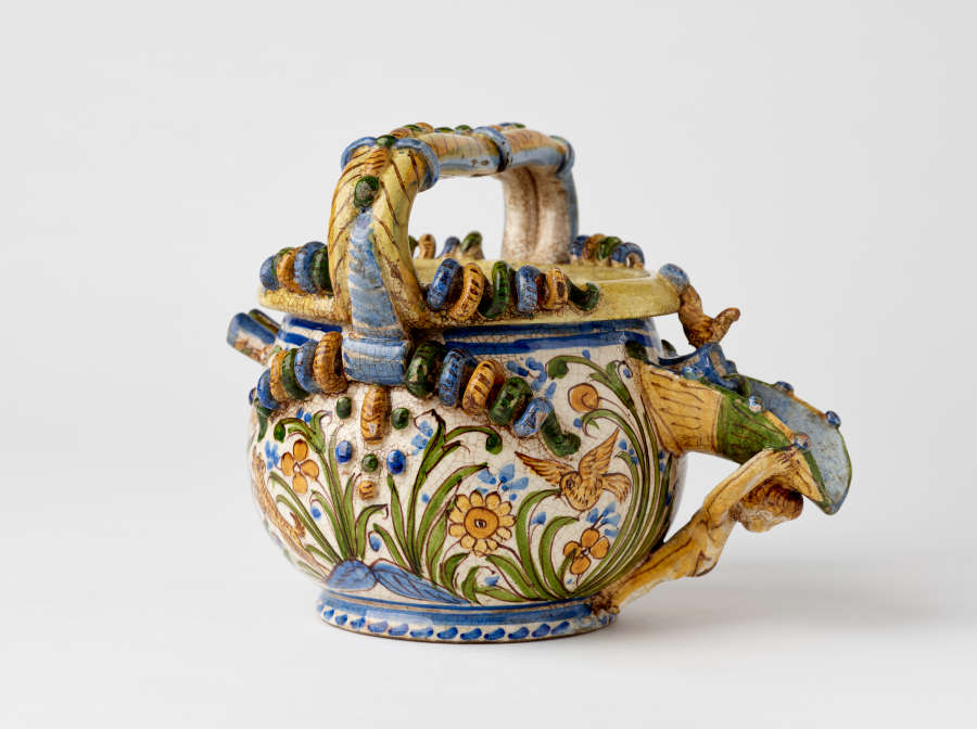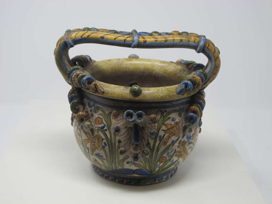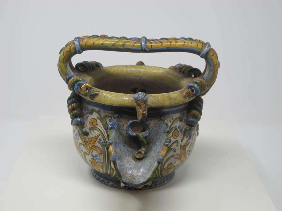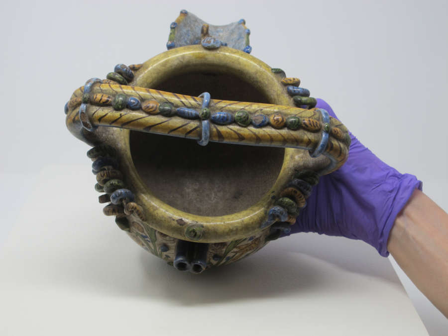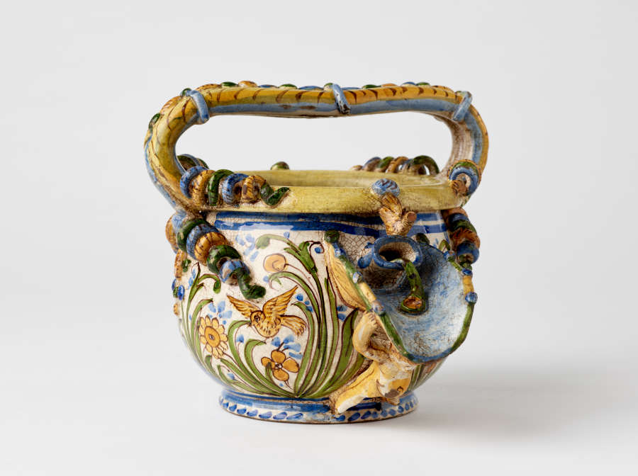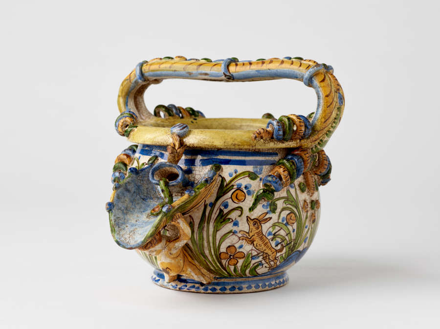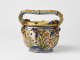 Earthenware with tin glaze, polychrome metal oxides, and glaze