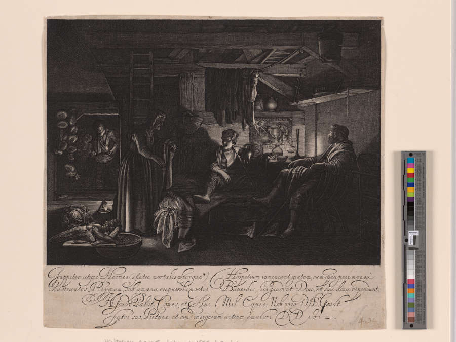insribed in plate lower border, "Jupiter atque Hermes....1612"; inscribed in ink LR "432"; erased or faded graphite initials LR "LJ". Watermark fleur de lys above a banded crest and heart.