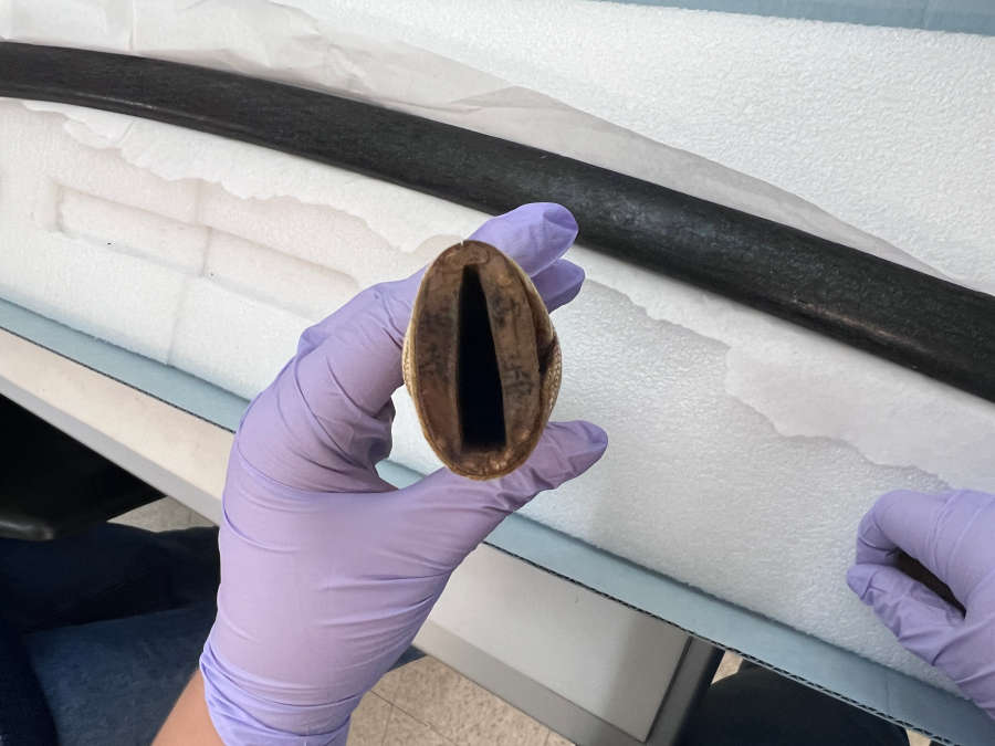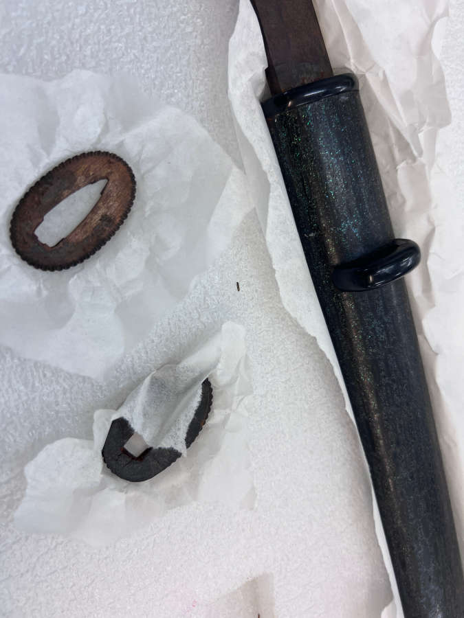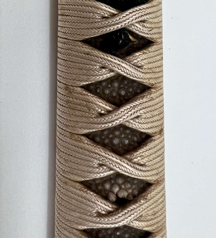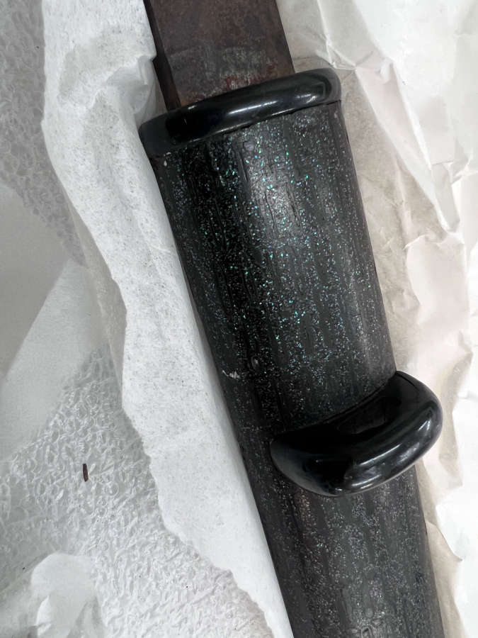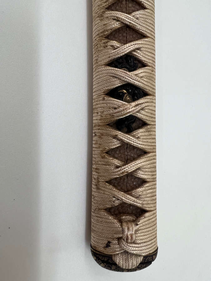 sharkskin; bronze; iron; gold; lacquer; pigment; fiber