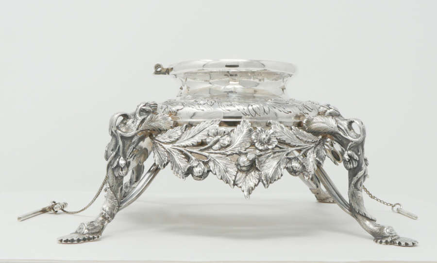 Marks: marked in all caps "GORHAM & THURBER PROVIDENCE R.I.PURE COIN"on underside of kettle only.