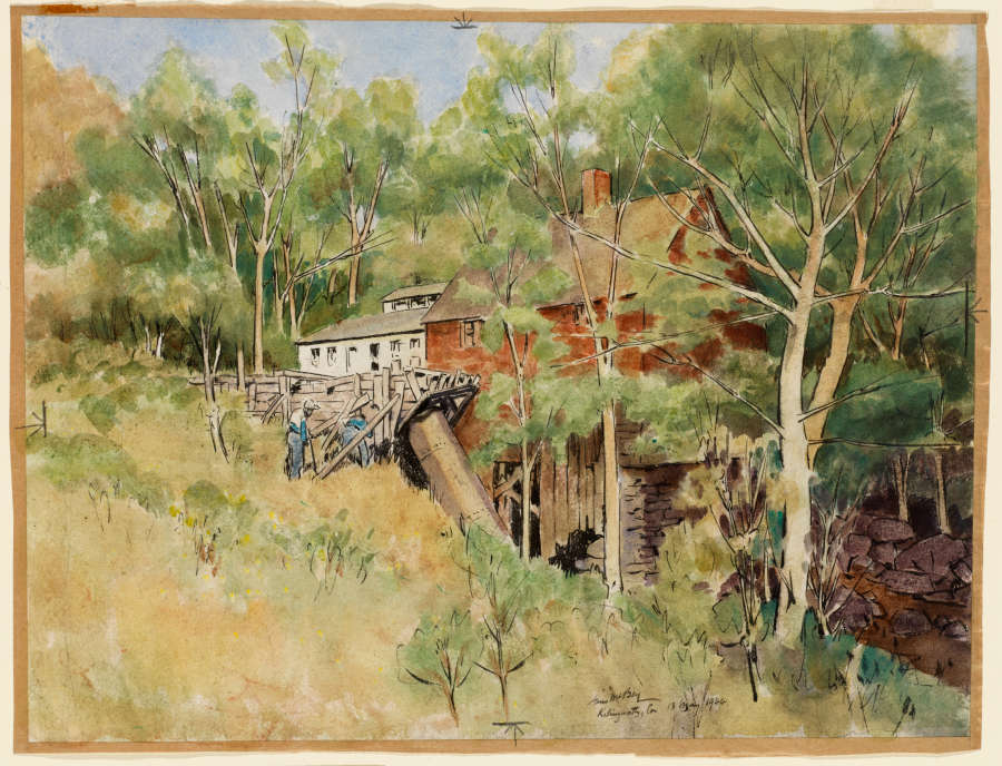 Recto:signed in ink in LR:James McBey/Killingworth, Con 13 May 1944 Verso:Inscribed in pencil:Mill at Killingworth Conn.