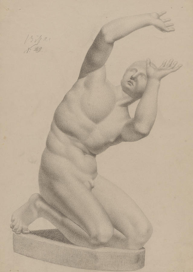Portfolio (1 print & 29 drawings) of Academic Studies & a Lithograph of Thorvaldsen's Studio