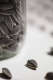 1000 porcelain sunflower seeds, sculpted and painted by hand; lidded glass jar