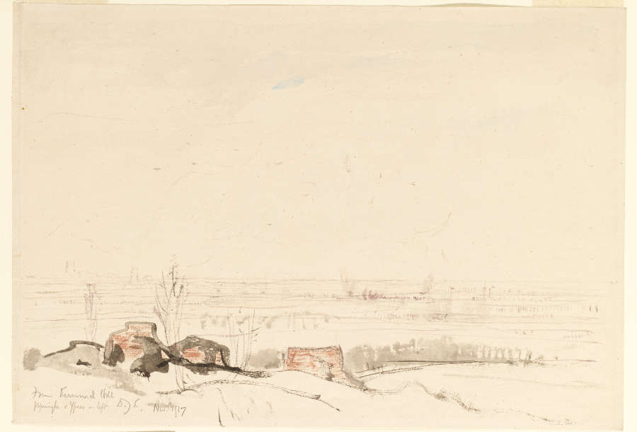 Inscribed, initialed, and dated in pencil in LL:From Kummel Hill/ Poperighe and Ypres ; on L:D.Y.C./Nov. 1917
