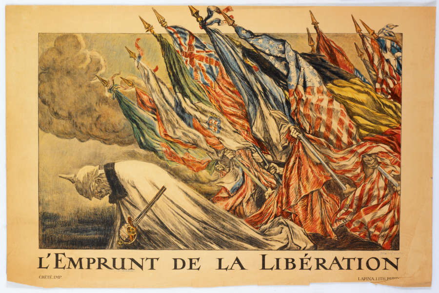 Signed in LR margin: "Abel Faivre"; title printed in L margin: "L' EMPRUNT DE LA LIBÉRATION"; printer's name printed in LR margin: "LAPINA. LITH.PARIS."; printed in LL margin: "CRÉTÉ.IMP"