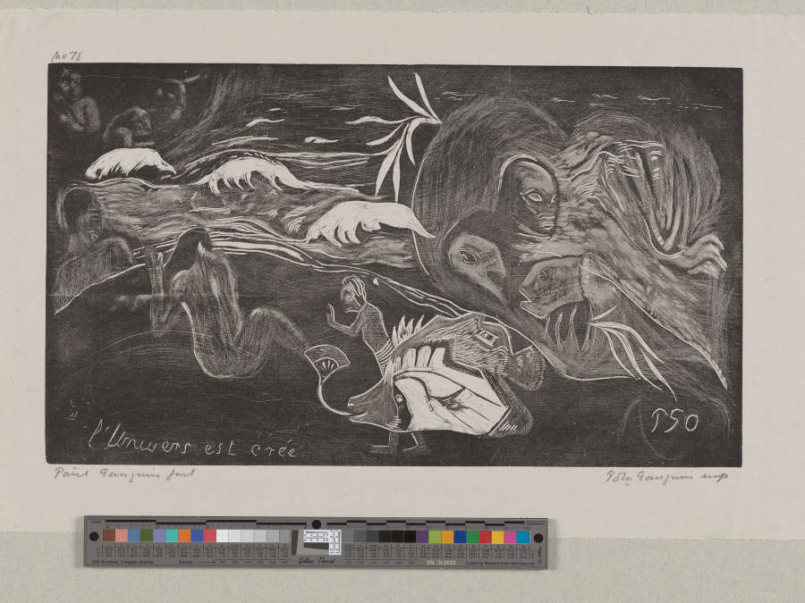 Lettered with artist's mongram LR: "PGO". Lettered LL: "L'Univers est créé". Inscribed UL: "no 78"; LR: "Paul Gauguin fait"; LR: "Pola Gauguin imp"