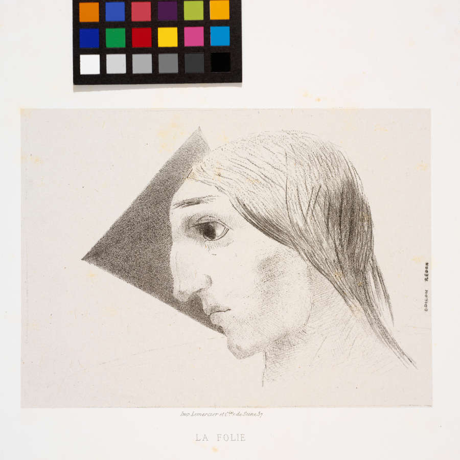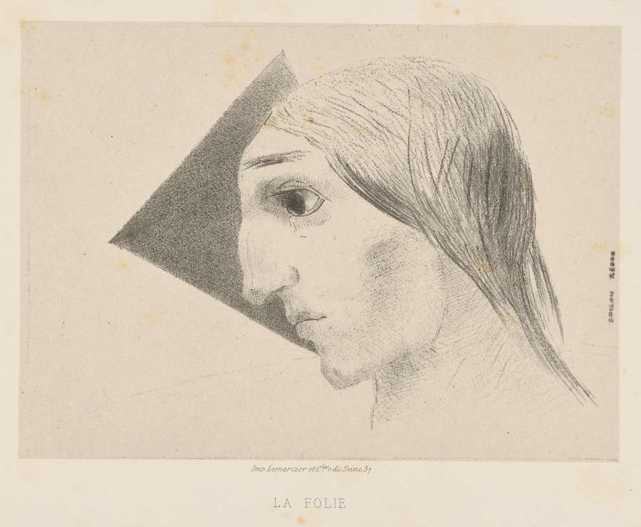 Letter: R: "Odilon Redon"; LC: "Imp. Lemercier & C.ie r. de Seine 57." and "LA FOLIE"