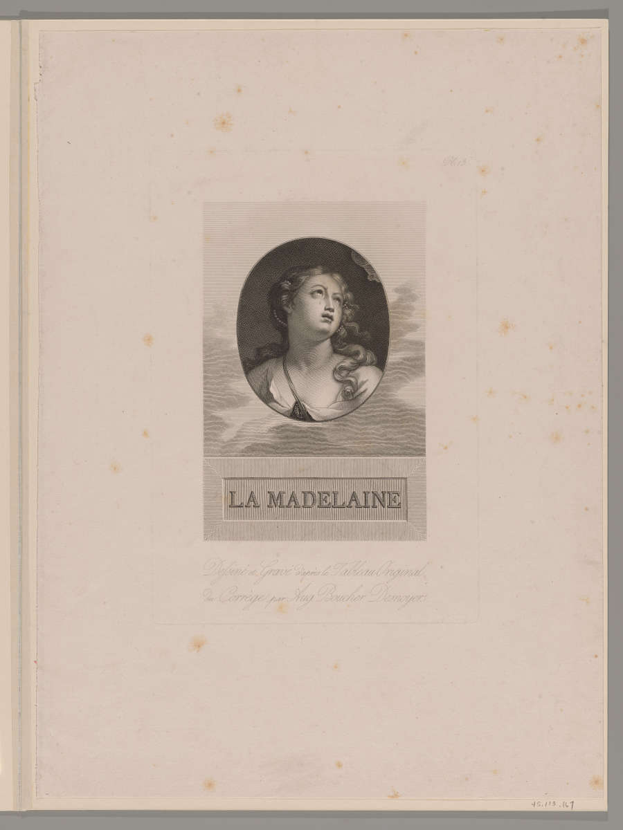 Lettered below image: "LA MADELAINE" / "Dessiné et Gravé d'après le Tableau Original du Corrège par Aug. Boucher Desnoyers."