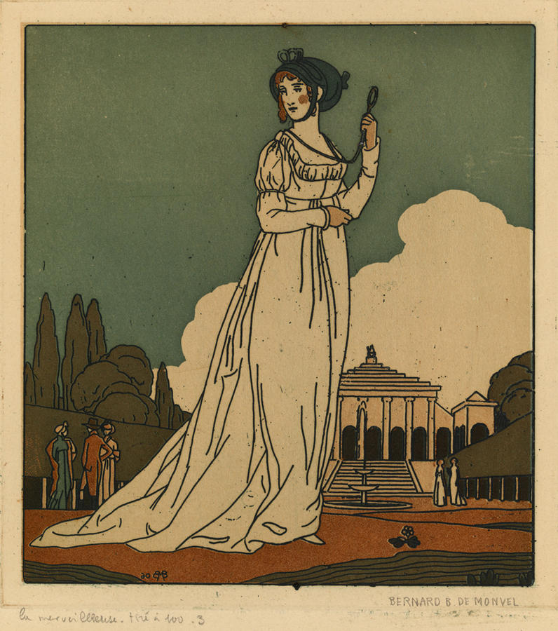 Original--Recto:in pencil signed, LR:BERNARD B. DE MONVEL ; inscribed, LL:la merveilleuse tiré à Nov . 3 Verso:in pencil, center:34 x 35½In Plate--Dated and initialed, LL:06(in reverse)BMB(in monogram