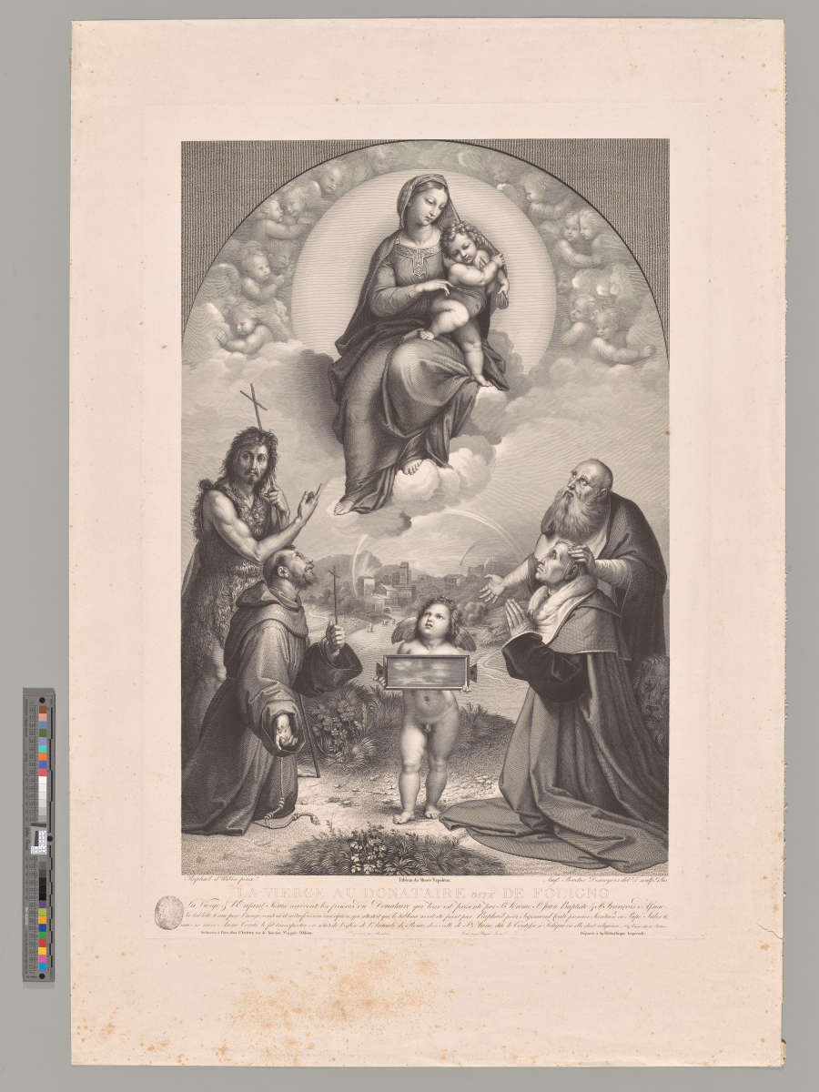 C: "Tableau du Musée Napoléon." / "LA VIERGE AU DONATAIRE dite DE FOLIGNO" / "La Vierge & l'Enfant Jésus...elle étoit religieuse, Voy. Vasari édit. de Bollari." / "Imprimée par Ramboz." / "Ecrit par Picquet Jeune."Stamped with the Artist's Mark (Lugt 2789)