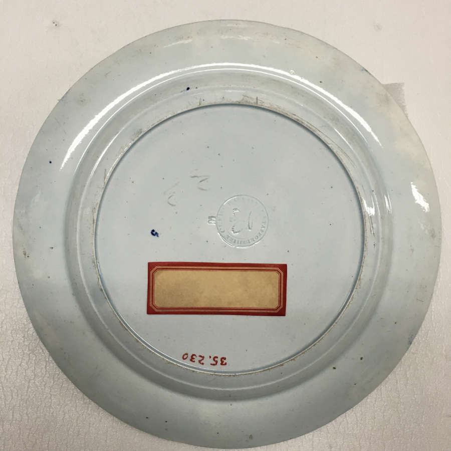 Marks: Title below; floral border; maker's name and mark impressed within circle and M above it impressed on back.