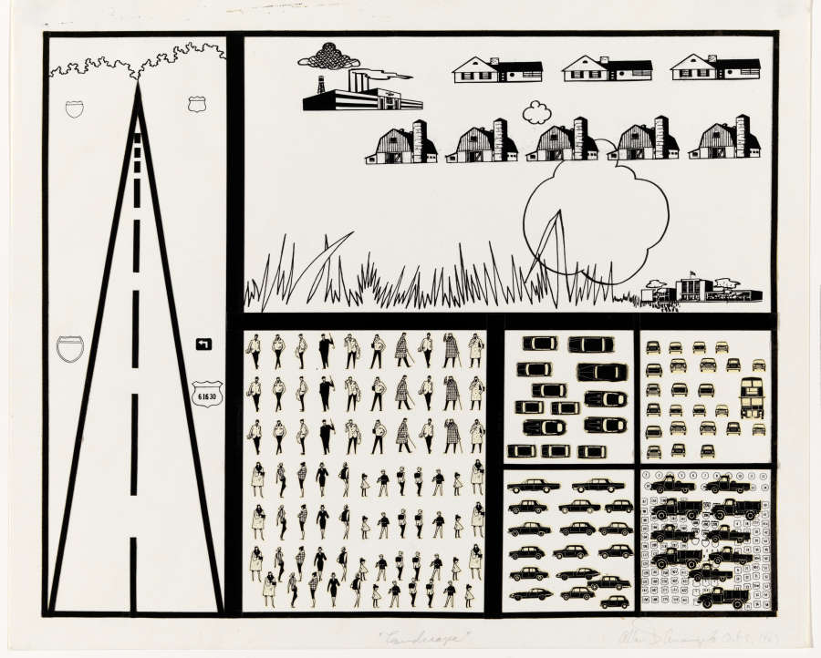 Titled, signed, and dated in pencil along bottom margin:Landscape; Allan D'Arcangelo Oct. 8, 1967