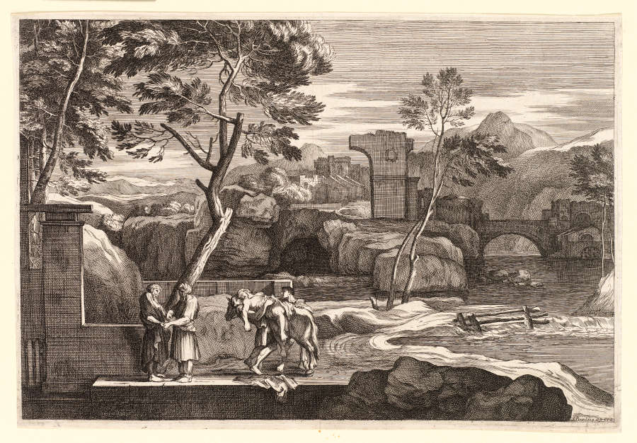 Landscape with scene from the Good Samaritan, 1600s