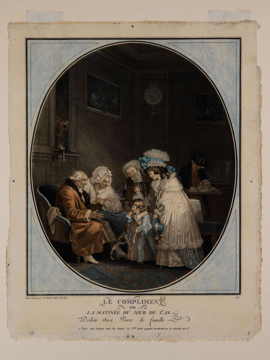 inscribed in plate: Le Compliment, ou La Matinée du Jour de L'an. Dédiés aux Peres de famille