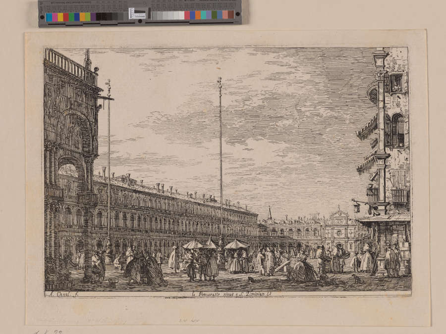 Signed on plate below image, LL: 'A. Canal. f.'; lettered on plate below image at centre: 'le Procuratie niove e S. Ziminian V.'